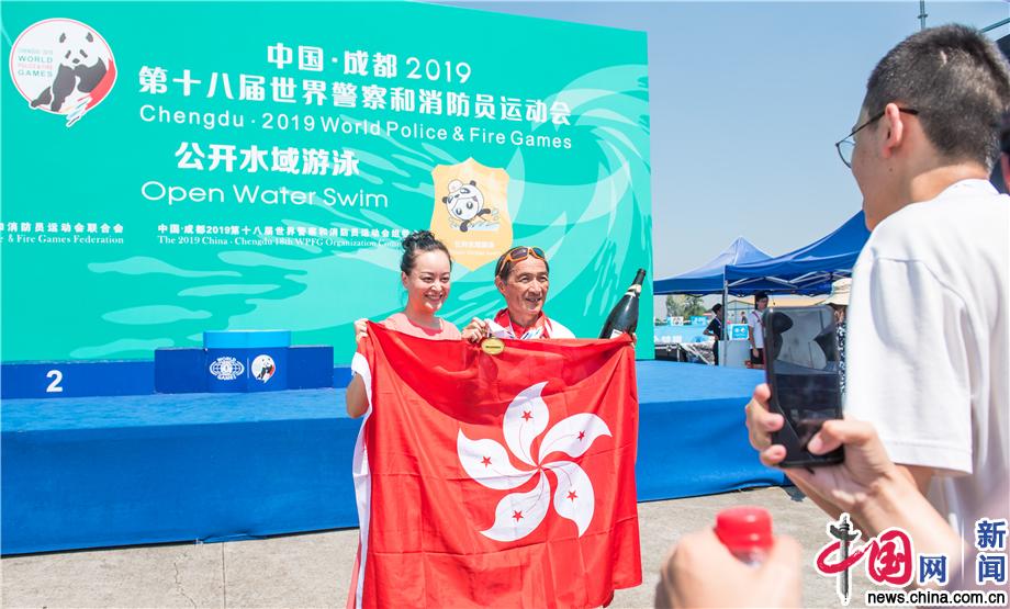 2019年8月15日,成都金堂,在刚刚结束的第十八届世界警察和消防员运动会公开水域游泳比赛项目中,中国香港警队喜获2金、2银的好成绩,向世界展示了香港警察的实力,也同时向世界表明他们有能力维护香港的长治久安。IC photo