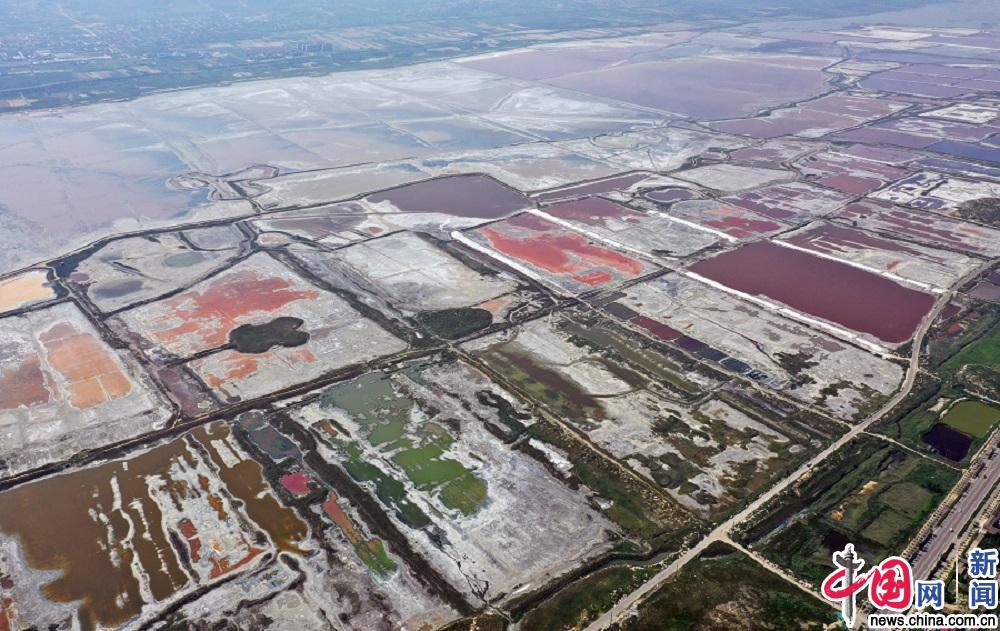 2019年8月17日,山西运城中条山北麓盐湖。盐湖盛产化工原料芒硝,大自然将盐湖粉墨成五颜六色的调色盘,十分壮美和雄浑。IC photo