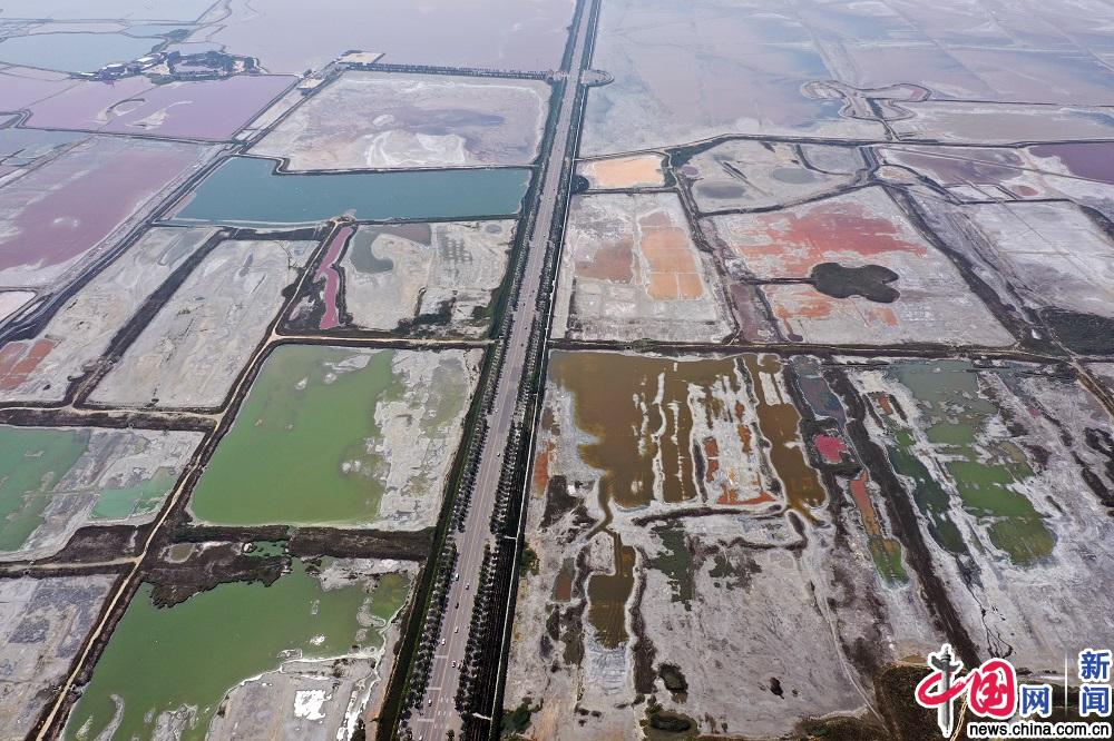 山西运城中条山北麓盐湖 五颜六色如调色盘