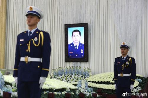 中新网8月19日电 据应急管理部消防救援局官方微博消息,19日上午,为营救落水群众英勇牺牲的吕挺烈士追悼会举行,各界群众自发前往吊唁,送烈士最后一程。