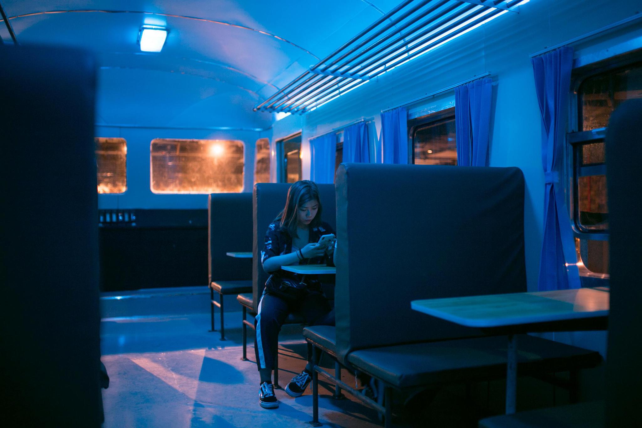 “列车到站,请您前门上车、后门下车”列车员的播报声传入耳中,我们来到火车站,踏上这辆东风1957列车,昏暗的车厢、蓝色的座椅、小桌板,仿佛回到了上个世纪。