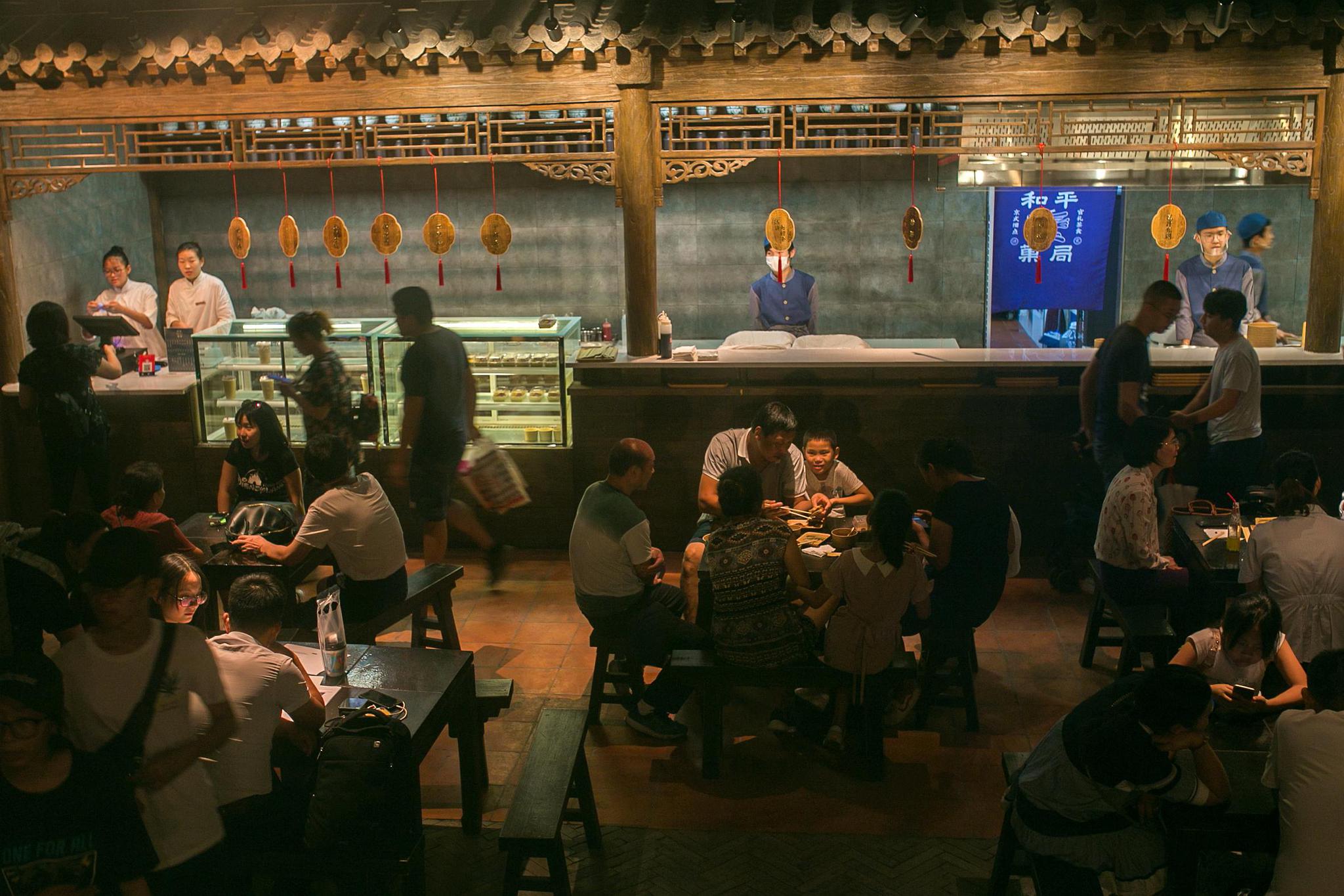 最近,王府井百货大楼里出现了一座“老北京城”,这个由京菜“局气”创始人韩桐打造的“和平菓局”,浓浓的年代感扑面而来。大青砖窄胡同儿、蜂窝煤、小马扎、绿皮火车、大戏院、照相馆还有上世纪的广告画……2400平方米的沉浸式体验空间,还原出鲜活真实的老北京生活,开出不久就成了王府井大街上的最热门“打卡地”。