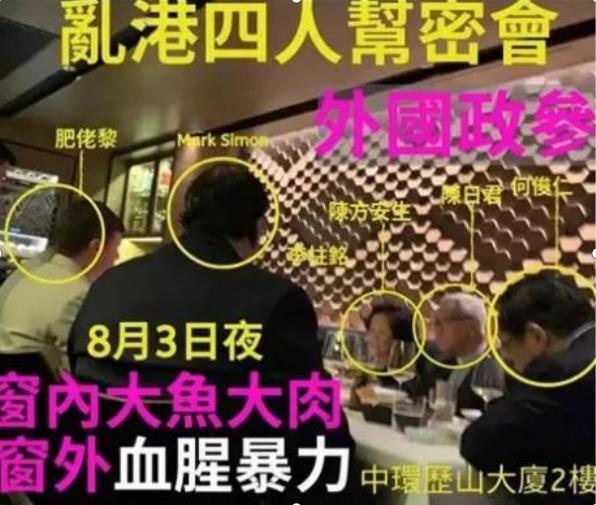 8月3日,香港激进暴力分子发动所谓“旺角再游行”示威。示威者晚间非法聚集在尖沙咀警署外闹事,其间有人纵火。就在香港街头发生激进暴力事件的同时,港媒发现,黎智英、李柱铭等反对派头目当晚密会外籍男士。