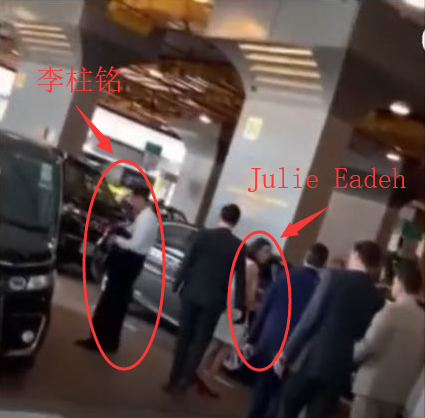 8月初,有网友拍到李柱铭与美国驻港澳领事馆政治部主管Julie Eadeh在停车场(白衣男子为李柱铭,白衣女子为Julie Eadeh)