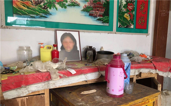 摆放在石祥林家中的李萍遗照。 新京报记者 向凯 摄