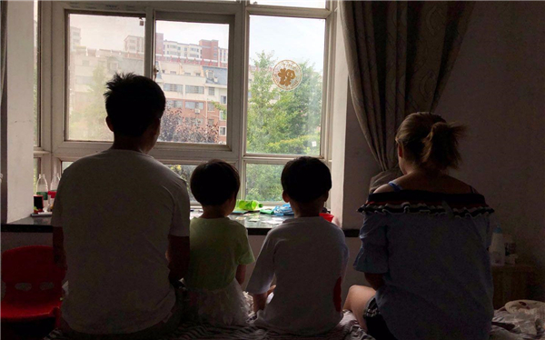 石祥林一家四口。除女儿外,均在一年前的事故中受伤。 新京报记者 向凯 摄