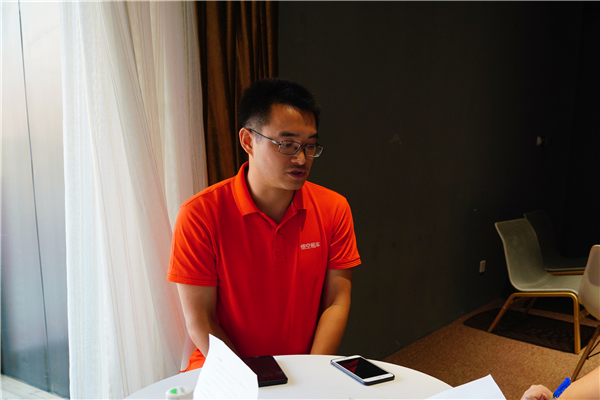 图为悟空租车创始人兼CEO胡显河接受采访。