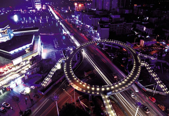 双福新区环形天桥流光溢彩 江津区委宣传部供图 华龙网发