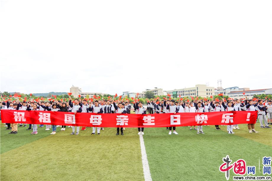 2019年9月16日,四川遂宁市遂宁六中开展了“我与祖国共奋进——国旗下的演讲”主题团日活动,近千名师生在操场上摆出了“我爱我的祖国”字样,高歌“我和我的祖国”,以此庆祝新中国成立70周年。刘昌松/IC photo