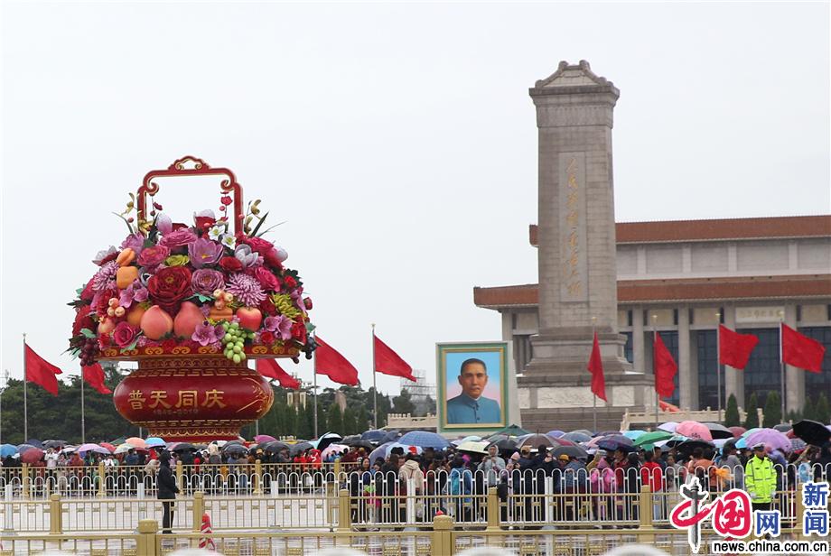 2019年10月4日,北京。一场秋雨一场凉,北京迎来降雨降温,气温呈现“断崖式”下跌,但游客的游览热情依旧不减。陶冶/IC photo