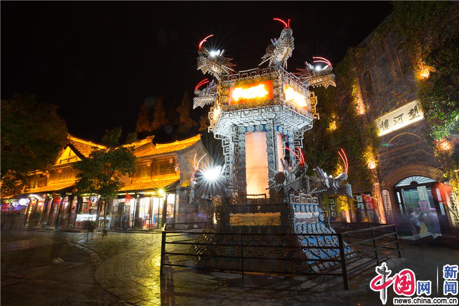 国庆长假台儿庄古城灯光秀丽、夜景迷人