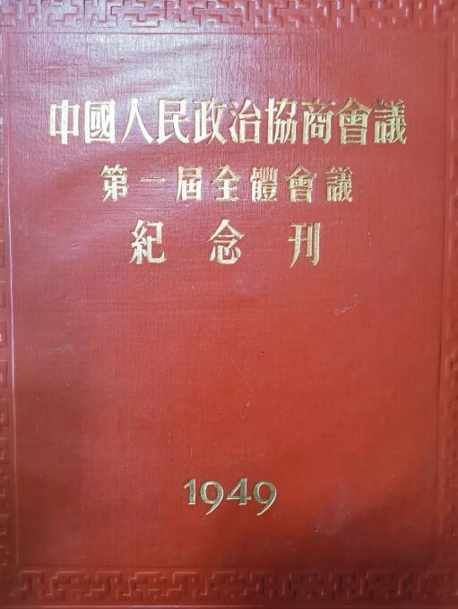 主席台上对称挂着孙中山和毛泽东的巨幅画像,中间是政协出炉不久的会徽,两侧是解放军军旗。