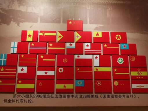 朱德设计了一个版本,旗子左上角为蓝色长方形,嵌有红五角星;陈嘉庚设计的那面,有镰刀和斧头图案;郭沫若设计的国旗上有两个长条,象征长江和黄河。他们都落选了。
