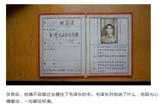 而田富达本人在那决定性的大会上的发言磕磕巴巴——当时他是没怎么受过汉语教育的台湾高山族人,表示希望“赶快解放台湾人民”。这个愿望至今也还没有达成。