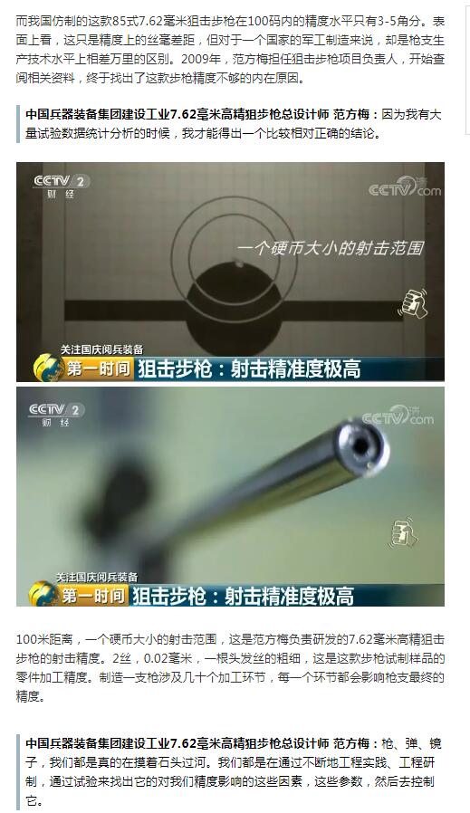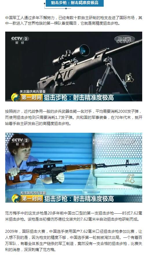 2012年7月27日,中国代表队第一次带着这支国产7.62毫米高精狙击步枪,在哈萨克斯坦参加了国际特种狙击手比赛,中国选手取得了优异成绩。对于比赛来说,这仅仅是一场胜负,但对于中国军工制造来说,却是工业制造水平的巨大进步。