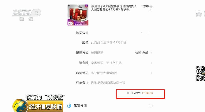 虽然蟹券带给消费者很多方便,但货不对板、店家跑路等问题频频出现。此外,蟹券的价格也让消费者颇为迷惑。从电商平台公开发售的蟹券来看,很多都标注888元、1888元等等,似乎大闸蟹价格不菲,送亲朋好友也有面子。但商家告诉记者,蟹券上标注的888元、1888元等,这并非是价格,只是螃蟹券的型号。