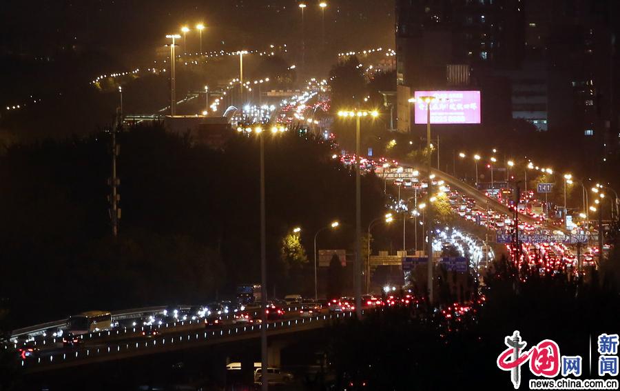 北京国庆节后首个周末不限行 晚高峰拥堵不堪(   / 3 )