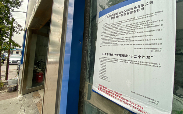 与这样的景象形成鲜明对比的是,市场内随处可见一份《北京市旧机动车交易市场有限公司驻场商户诚信经营告知书》,其中第五条明确,“商户所有从业人员不得参与违法买卖机动车指标”。