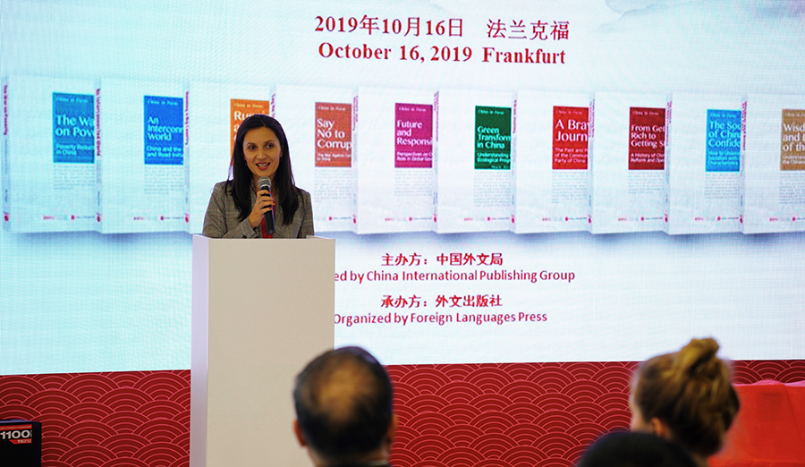 罗马尼亚科林特出版集团对外部版权经理伊奥娜·摩格萨努(Ioana Mogosanu)在致辞中说,今年是中华人民共和国成立70周年,也是中国和罗马尼亚建交70周年,罗马尼亚是最早与中华人民共和国建交的国家之一。近年来,通过科林特出版集团发起的多个项目,中国和罗马尼亚之间的国际出版合作越来越多。科林特出版集团是《习近平谈治国理政》第一卷、第二卷罗马尼亚文版合作方,我们很高兴为罗马尼亚读者带来“如何看中国”系列,这是有关中国的政治、经济、社会、文化、生态的系列图书,每一卷都突出了世界正在探讨的热点话题。