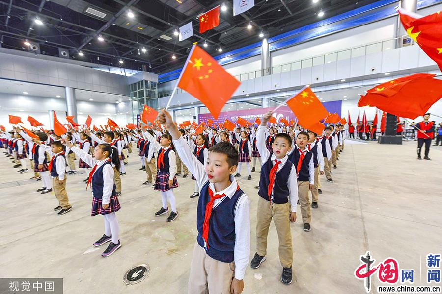 2019年10月18日,2019年中国击剑俱乐部联赛全国赛扬州站开幕式在扬州国展中心举行,来自全国3000多名击剑选手将齐聚扬州。江岳/视觉中国