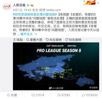 据此前报道,今年8月初,有网友反映电视剧《亲爱的,热爱的》第39集中存在“问题地图”。