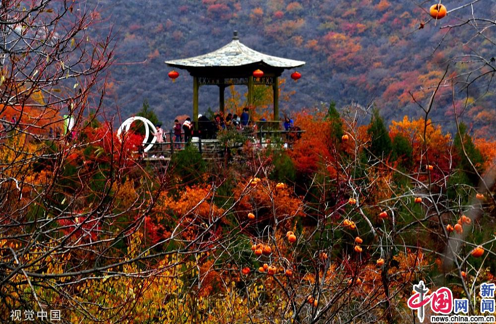 2019年11月3日,北京坡峰岭红叶节迎来最佳观赏期, 吸引众多游人前来登高赏红叶。李文明/视觉中国