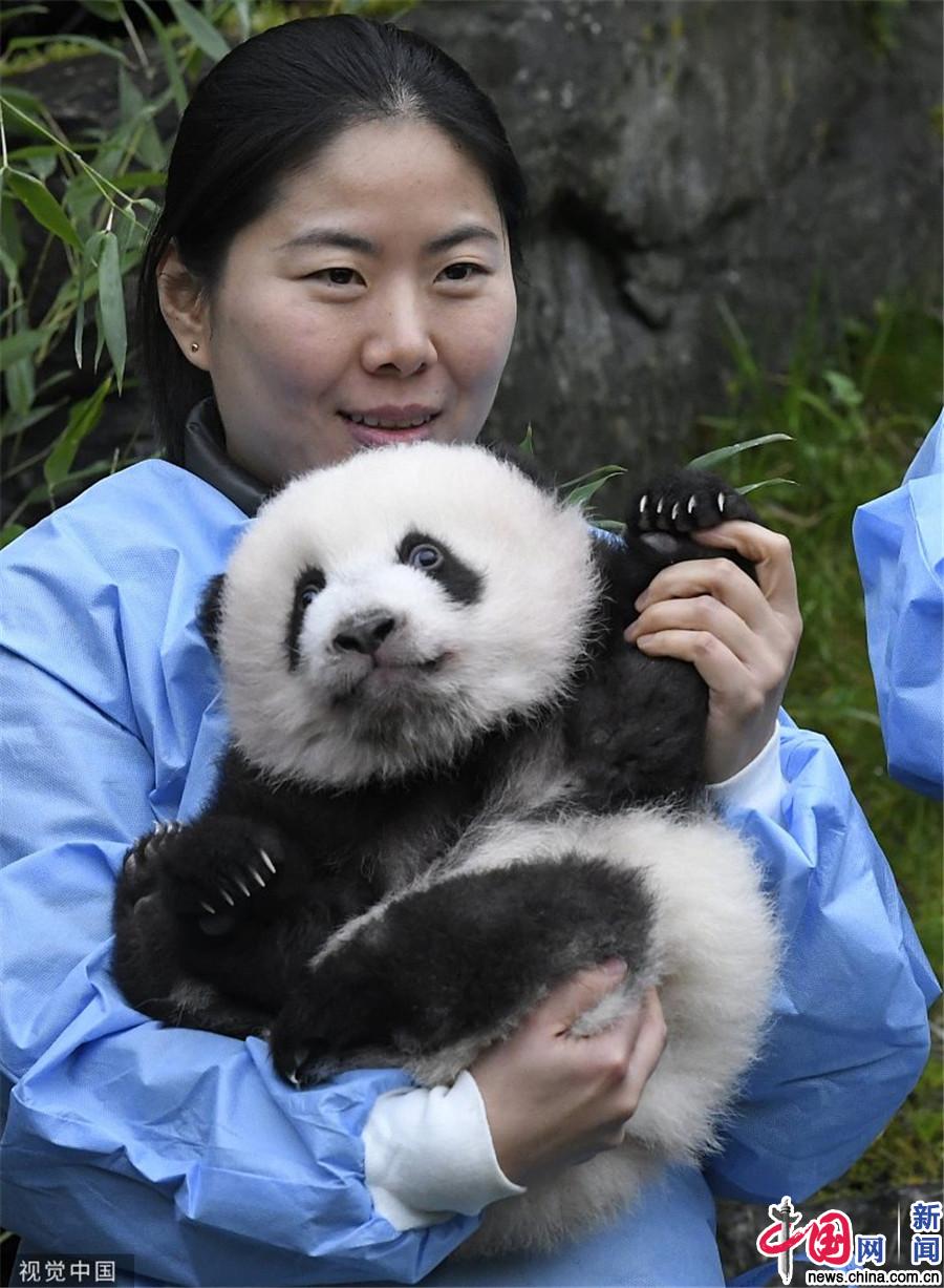 比利时新生双胞胎大熊猫宝宝亮相 取名“宝弟”“宝妹”