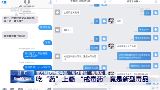 浙江省慈溪市公安局禁毒大队民警 陈警官:我们在工作中发现,慈溪龙山一带有一对华姓夫妇,通过网络贩卖一个所谓的戒毒药。这种戒毒在药品说明标注上有一定的戒毒功效,我们对这个药品做了检测之后发现,里面含有国家管控的禁麻类药品“地芬诺酯”的成分,这种成分会让人上瘾,产生精神依赖。