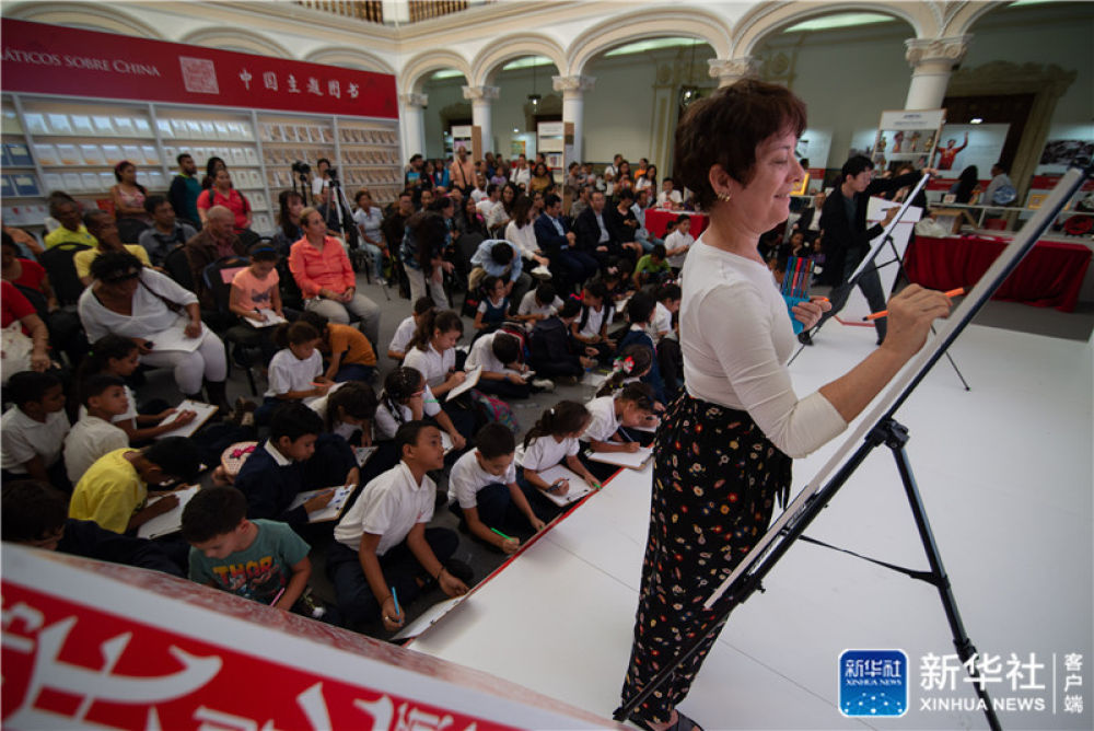 书展期间,中国作家阿乙、诗人蔡天新与委著名作家进行文学研讨和交流互鉴,与当地民众面对面深入交流;在“用童书传递生存智慧、温暖和爱——中委童书画家对谈”活动现场,来自两国的几十名小学生围坐在中国童书漫画家庄建宇和委著名插画家克莱门蒂娜·科尔特斯身边聆听创作灵感并集体现场作画;在中委诗歌朗诵会上,来自两国的诗人用不同语言共同吟诵经典诗歌;在“汉字的智慧”文化体验活动上,书法家魏峰现场书写甲骨文、大小篆等不同形态的字体,并现场进行国画创作,展现中国传统书画魅力。
