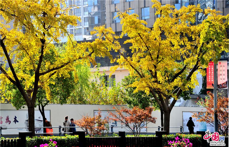 2019年11月19日,上海。经过新一波冷空气的洗礼,降温后的申城使色叶树的色彩越来越美,一年之中最美的深秋色叶季已经到来。漫步沪上的公园绿地,北美枫香、榉树、无患子、乌桕、银杏等树叶都呈现各种不同的绚烂斑斓的色彩,菖蒲等植物也在阳光下格外耀眼,醉人美景犹如打翻了画家的调色盘,如诗如画、美不胜收。钟阳/IC photo
