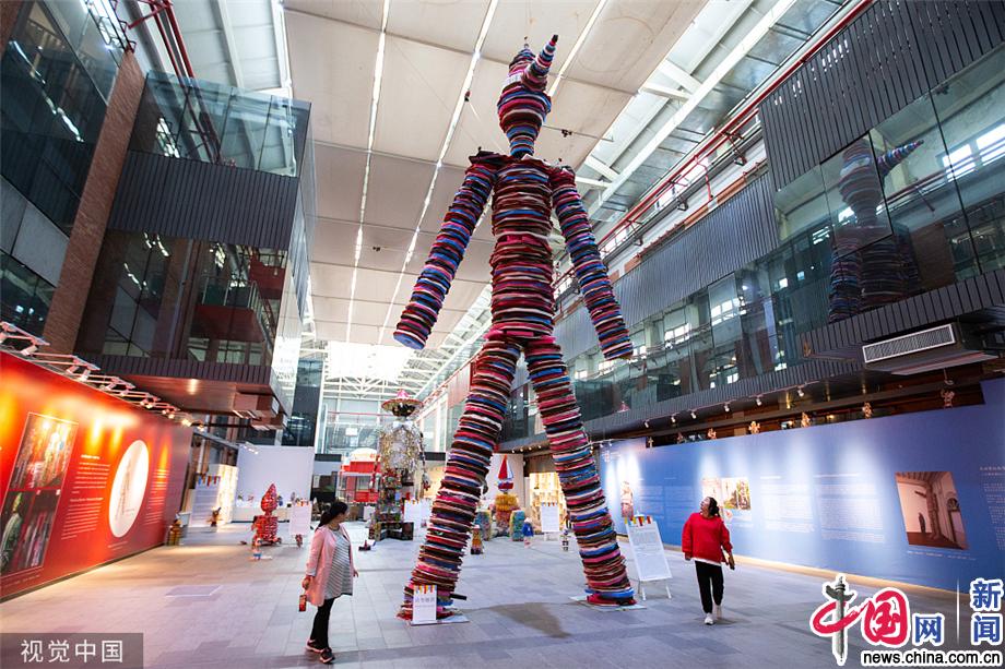 2019年11月21日,南京,“匹诺曹在南京——废品中的艺术”活动现场。现场展出了由意大利艺术家爱德华·马拉齐齐和南京青少年学生用废弃材料打造的形态各异的匹诺曹形象作品,令观众仿佛置身于“匹诺曹童话世界”。苏阳/视觉中国