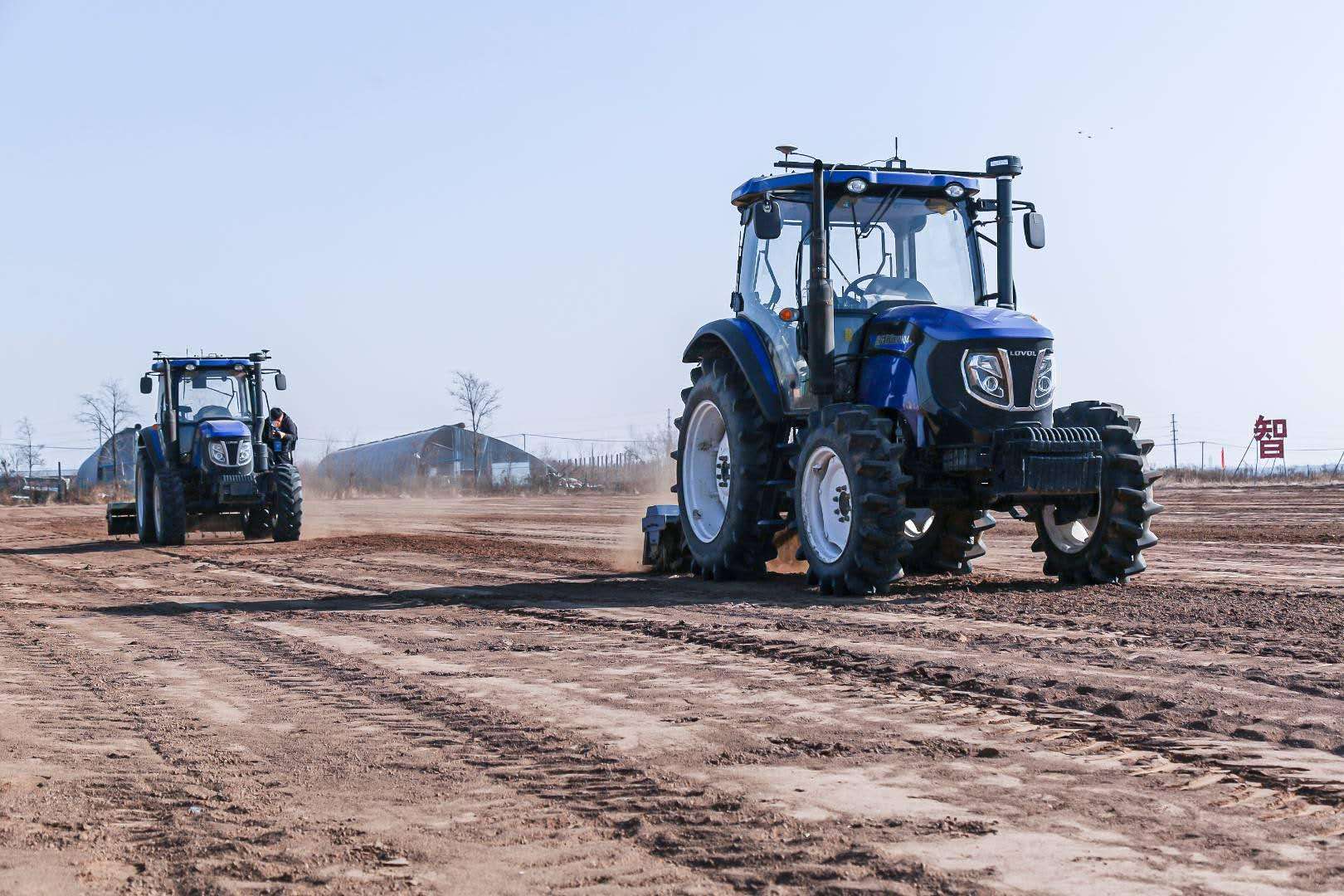 图为雷沃无人驾驶拖拉机作业演戏