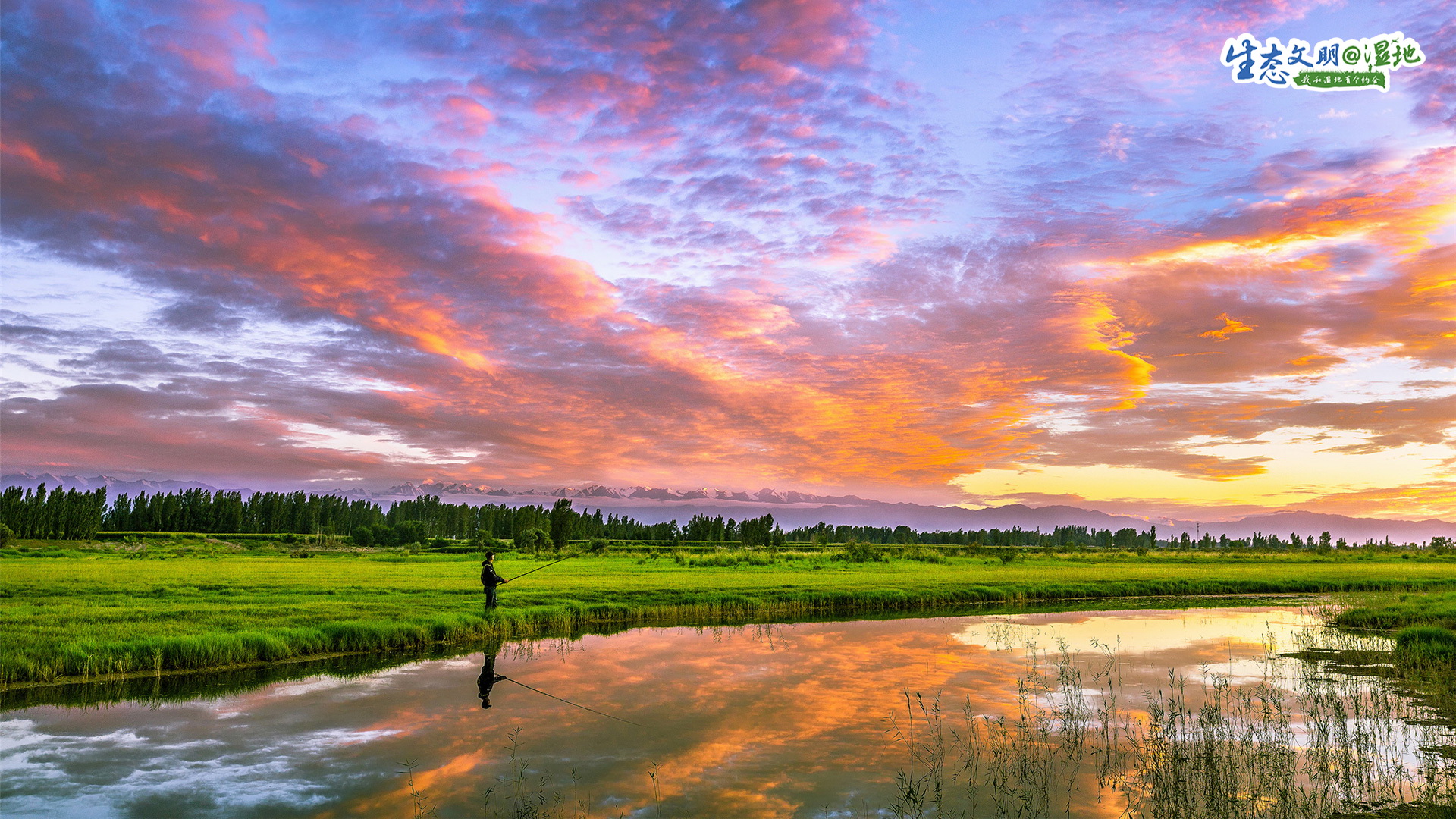 肃州区湿地有河流湿地、湖泊湿地、沼泽湿地和人工湿地4种类型交错分布,呈现出独特的戈壁绿洲湿地景观。 邹鹏 摄