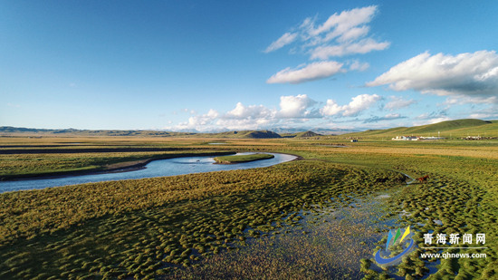 青海新闻网·青海新闻客户端讯(记者 樊永涛 摄影报道) 从高空俯瞰,河流曲曲弯弯细又长,肆意地流向远方,天空蔚蓝,白云朵朵,牛羊遍野,湖泊凉爽清澈……这是在初秋时节,黄南州泽库县泽曲国家湿地公园内记者见到的景象。