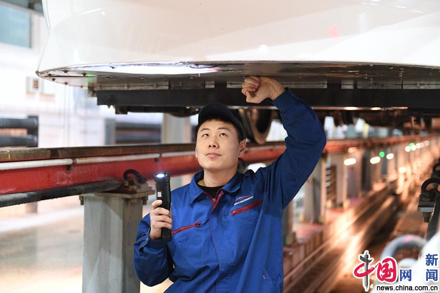 沈阳局集团有限公司职工精心检修动车组。(中国网发 李季春 摄)