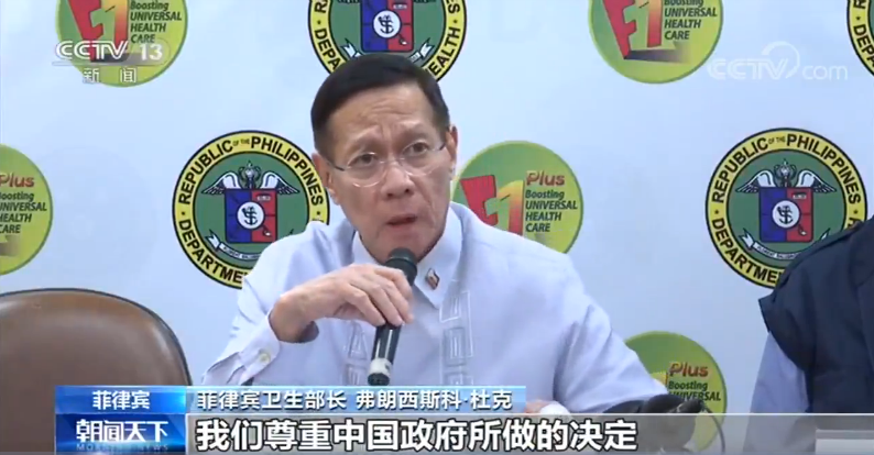 菲律宾卫生部长 弗朗西斯科·杜克:我们尊重中国政府所做的决定,我们要做的是确保我们对疫情进一步发展进行监控。