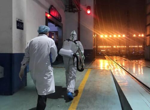 一趟趟,一次次,一整天下来,浑身上下腰酸腿疼,喉咙沙哑,但他们依然坚守在岗位上,将消毒工作落实到位,确保列车卫生安全。他们笑着说:“疫情来了,我们就是坚强防线……”。