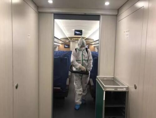 喝了一杯冲剂,重新换上防护服,樊杨带着防疫人员对动车组的餐车、司机室、监控室、广播室等重要场所进行消毒,动车组车厢两端连接处、行李架等也认真喷洒到边边角角。