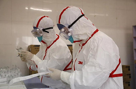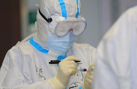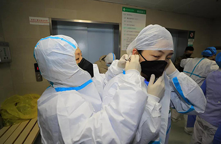 他们在“清洁区”吃完早饭后,便到“缓冲区”进行工作前的准备。在这里,队员们要完成隔离服穿戴、药品搭配等工作,值班医生还要在这里就病人病情进行必要的交流与探讨。