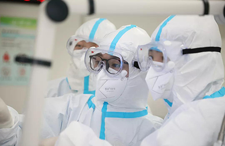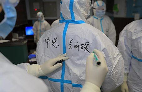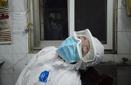 每个班次,一线的医疗队员都需要穿着厚重的防护服,在封闭式的重症监护室中持续工作六七个小时,一天吃一顿饭已经成为常态。为了避免值班期间上厕所的不便,他们还不敢多喝水,经常累得口干舌燥、嗓音沙哑。累了就靠着椅背、趴在办公桌上调整几分钟,而后继续投入战斗。在疫魔肆虐的非常时期,全体医疗队员坚守在战斗一线,用行动诠释了作为一名军人、一名白衣天使应有的责任与担当。(文字孙威、覃丽萍、苏兴圣 摄影王皓宇、姚尧、车伟、权东、王振)