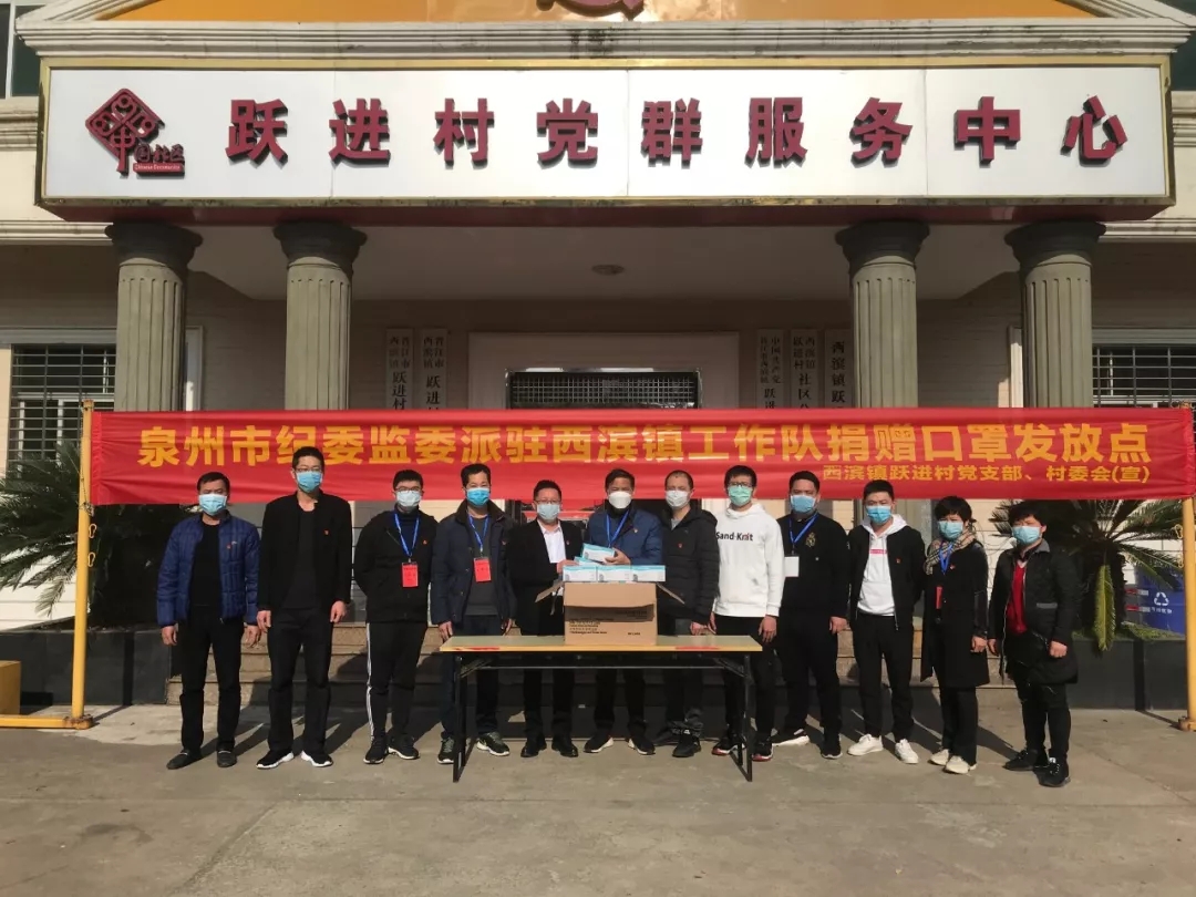 泉州市纪委监委工作队向跃进村捐赠口罩。(图片来源:刺桐清风)