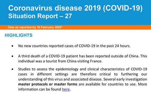 世卫组织最新疫情报告。世卫组织官网截图