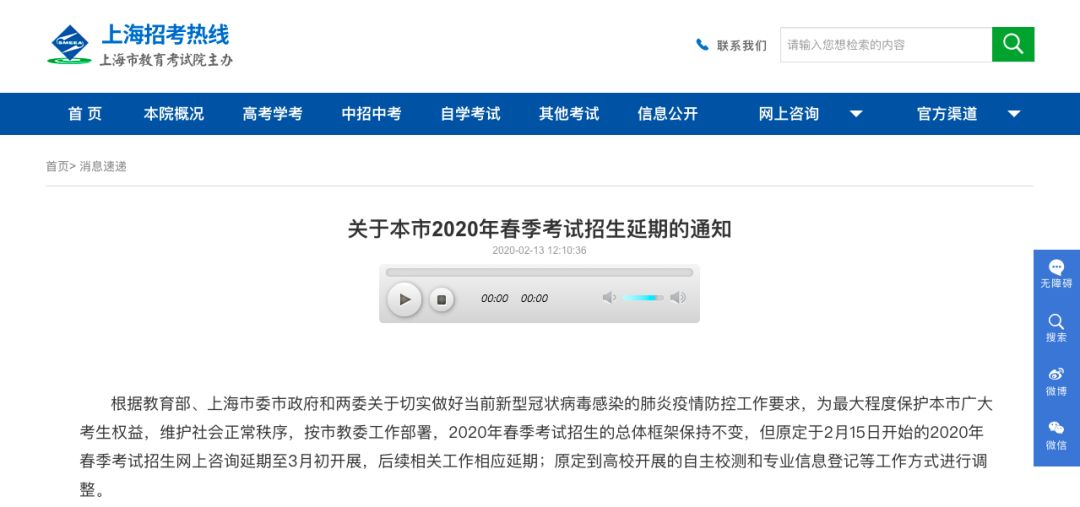 上海:春季考试招生延期