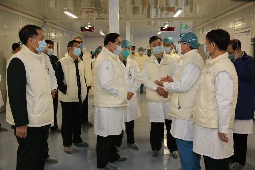 黎檀实(右三)介绍新发热门诊启用情况。孔令占 摄