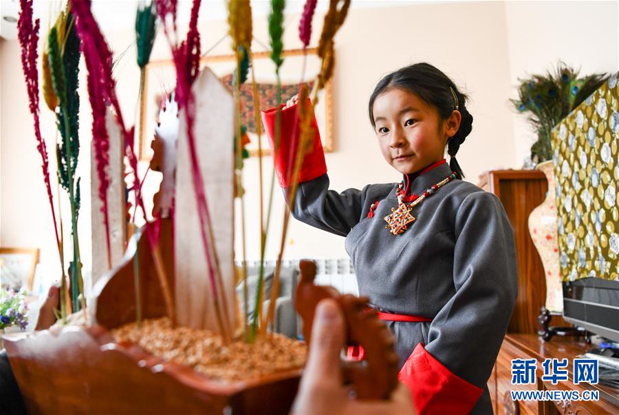 一名身着藏装的藏族小姑娘在吃切玛(2月24日摄)。 当日是藏历新年初一,西藏各地群众欢度藏历新年。受新冠肺炎疫情影响,当地提倡电话拜年、少出门、不聚集,居家享受新年乐趣。 新华社记者 晋美多吉 摄