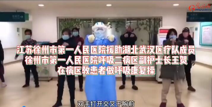 有时我们上晚班,晚间巡视病房,看到一些轻症病人会在病床上玩手机或是睡觉,我当时在想怎样可以带动病人做一些有意义的事情,帮助他们早日恢复健康。回到住处,我在手机上查了很多资料,看到江苏省护理学会发的《2019新型冠状病毒肺炎轻症、重症患者呼吸康复方案》里面有一些呼吸康复操,我把它摘抄下来并牢记于心熟练掌握。上班后,与医生共同评估患者身体状况,如果条件允许,带领患者共同做呼吸康复操。大家带着口罩在大厅跟着一起做,呼吸康复操得到了患者的好评!有位患者感动地说:“我们在这不仅仅得到了最有效最及时的治疗,还有你们教我们做护理康复操,帮着我们早日康复,不是亲人胜似亲人,真心的感谢你们!”