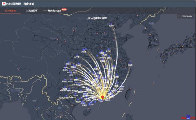 百度迁徙地图上,自2月中旬开始,深圳在人口流入城市中一直名列前茅。
