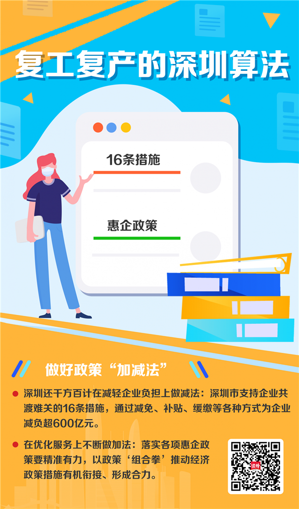 深圳市支持企业共渡难关的16条措施,通过减免、补贴、缓缴等各种方式为企业减负超600亿元。