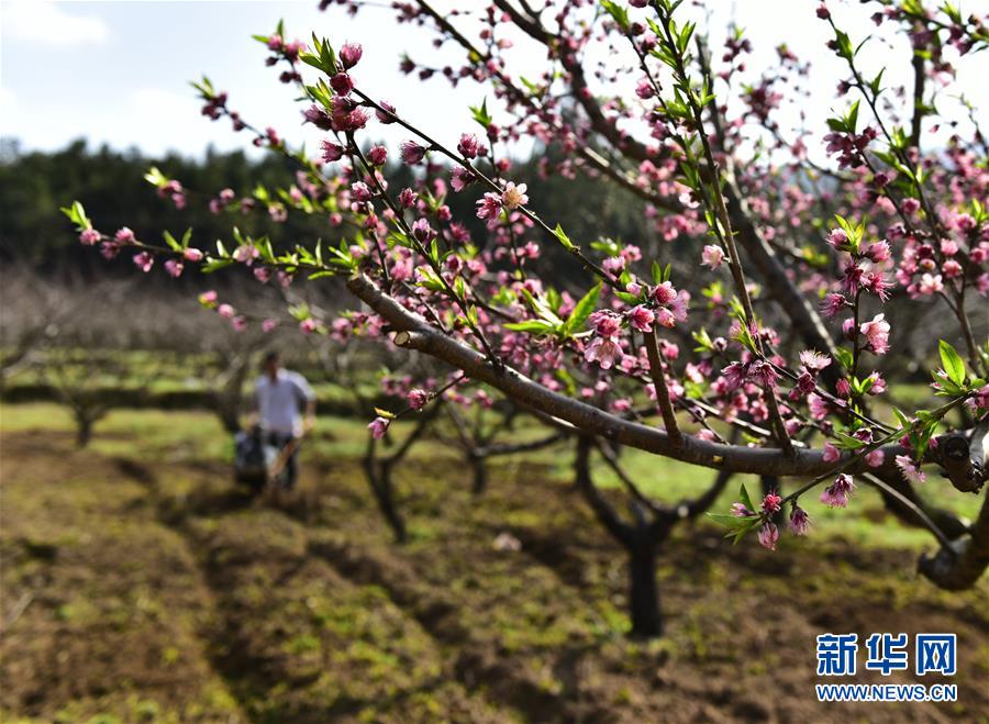 2月24日,在湖南省永州市蓝山县塔峰镇东江村,村民在果园翻耕土地。 初春时节,气温回升,各地农民在田间地头忙于农业生产。 新华社发(杨雄春 摄)