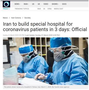 报道称,伊朗塔斯尼姆通讯社援引该官员的话说,在有关部门做出决定后,该医院于当天(1日)早晨开始施工。他还表示,希望该工程能在未来3天内完成,接下来则开始装备设施。